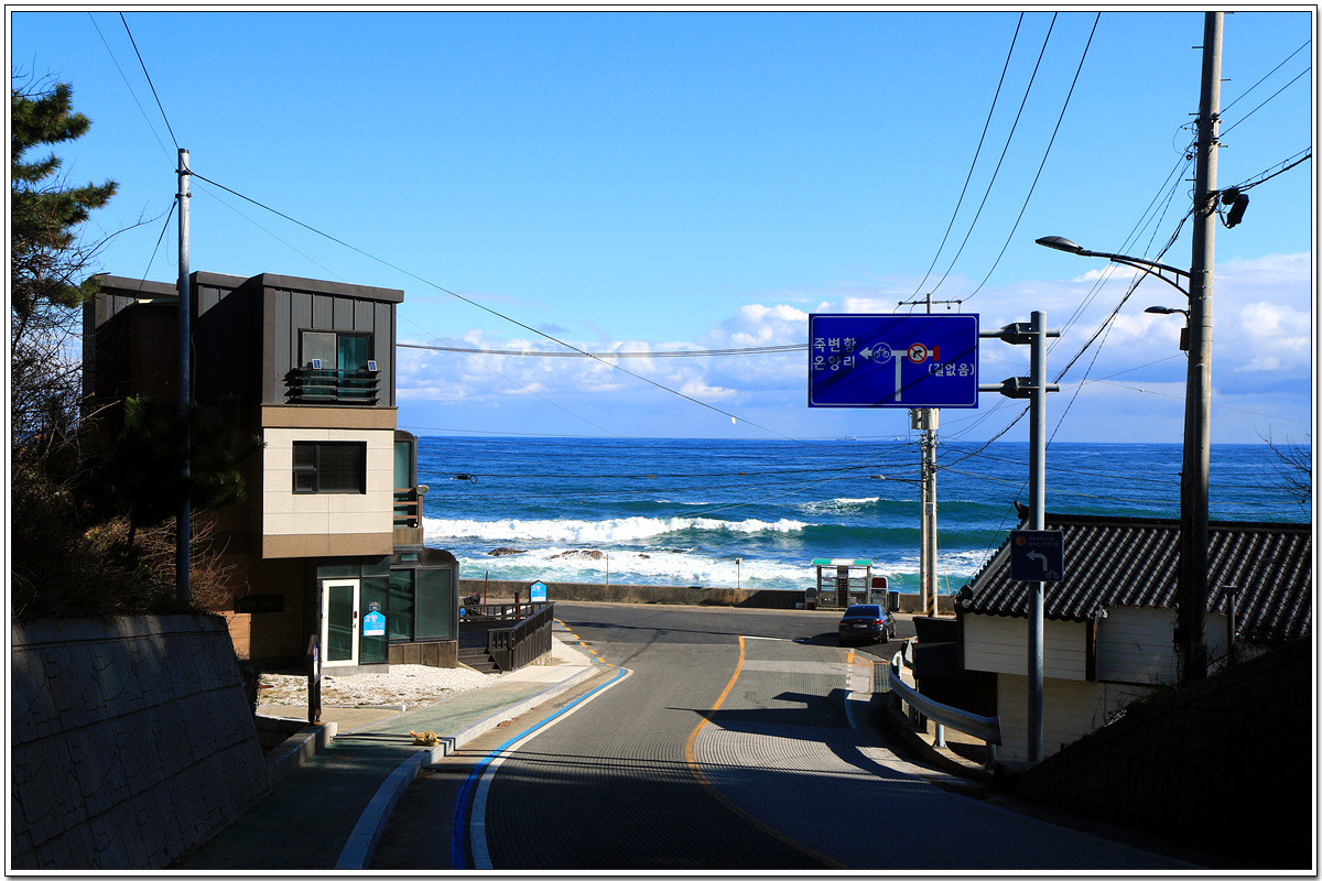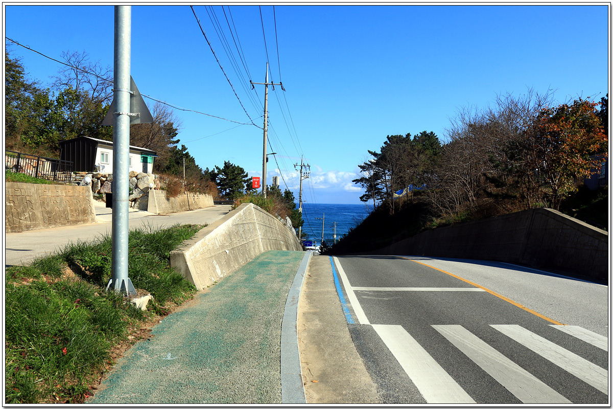 조용한 어느 동네를 지나 고개를 넘으니 이제 저기 바다가 보인다