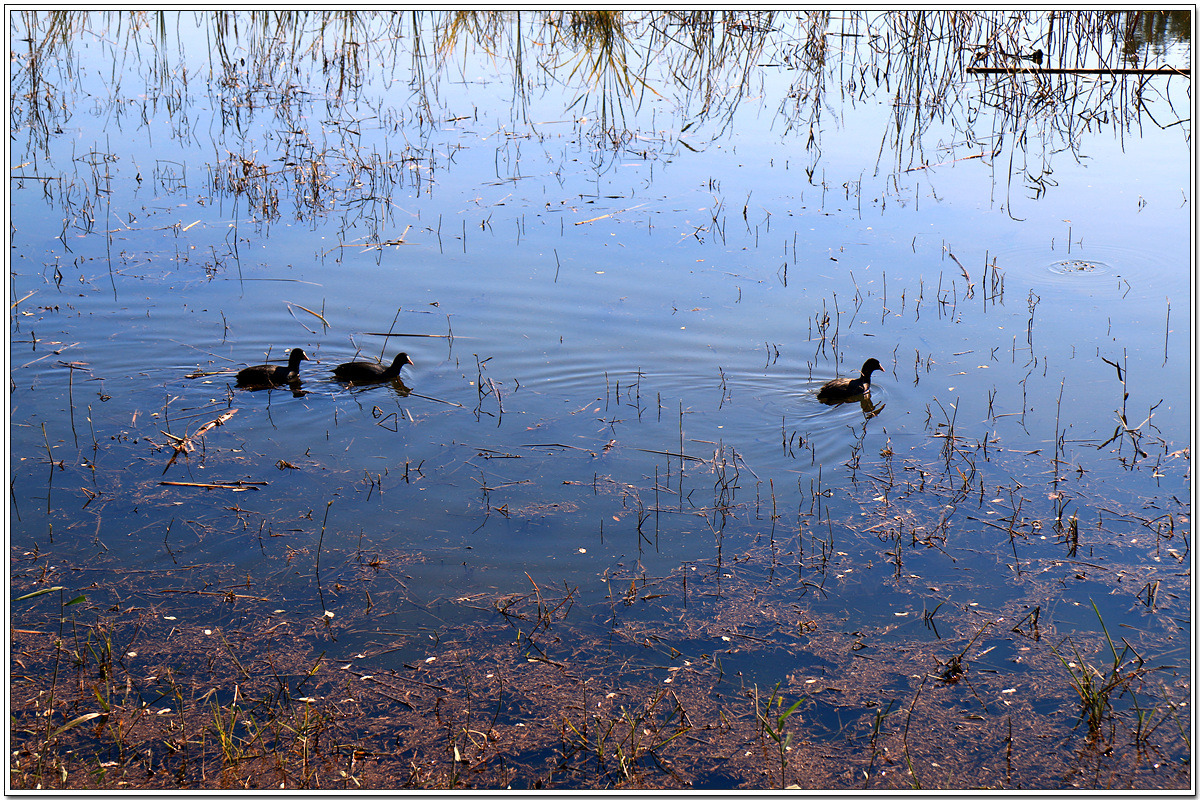 백조(白鳥)와 대비되는 색깔의 물닭도 사랑스럽다