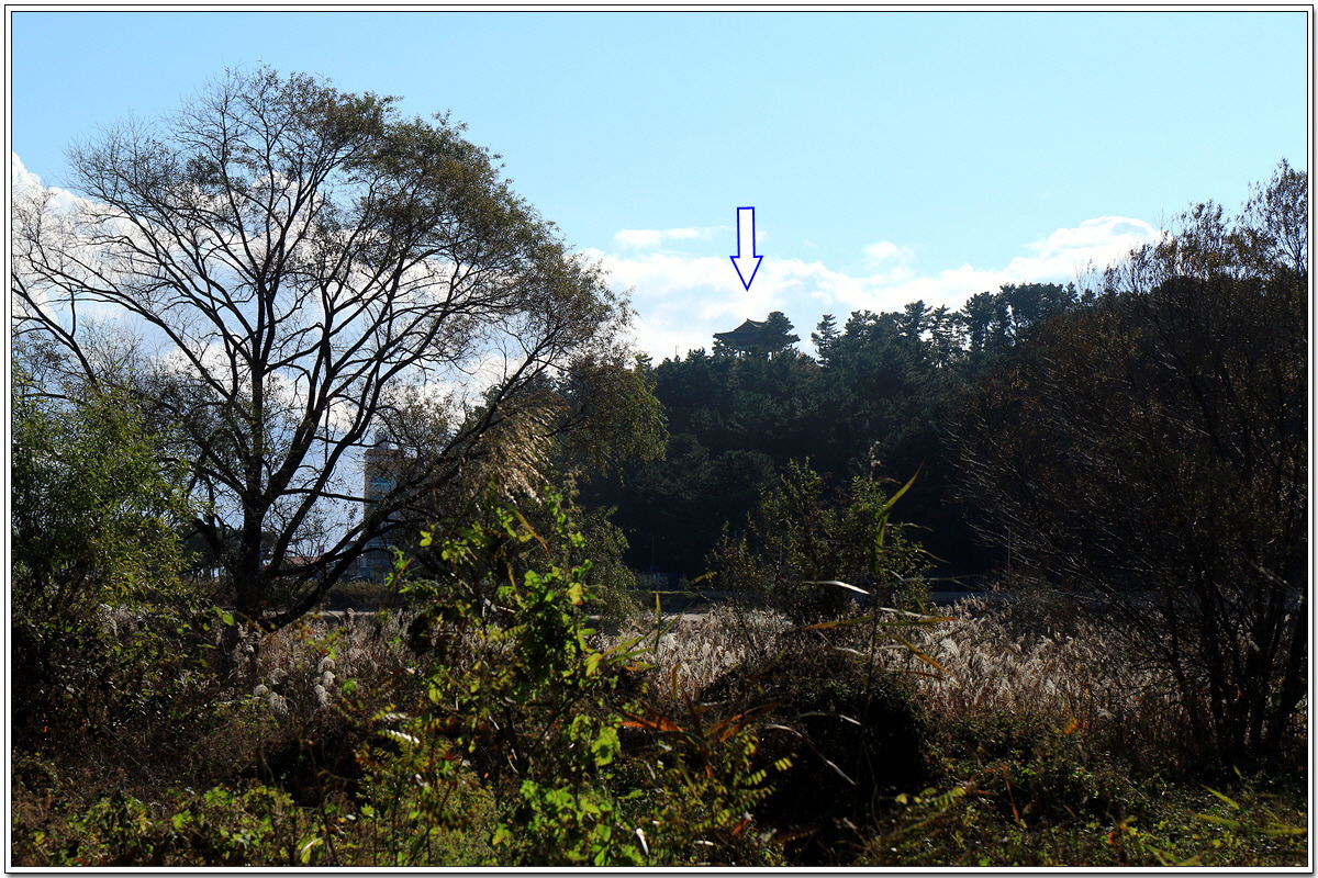 저기 언덕 위에 자리잡고 있는 망양정이 실루엣으로 보인다