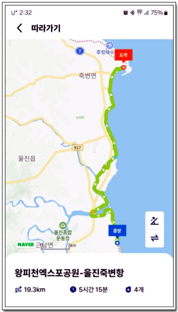 14:28 죽변항에서 26코스를 마감한다 / 19.3km, 5시간 15분