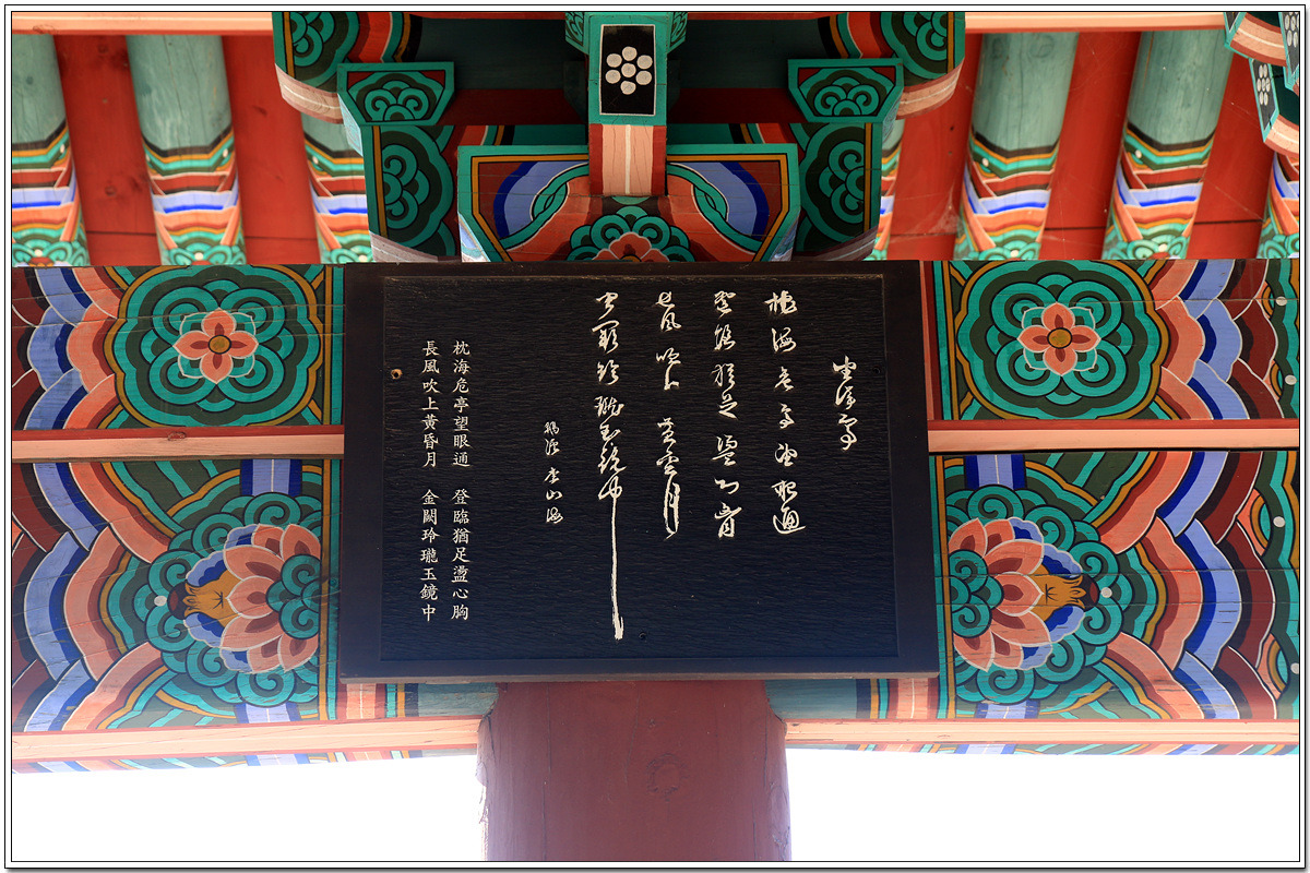 정자에 빙 둘러 걸려있는 시인묵객들이 노래한 현판