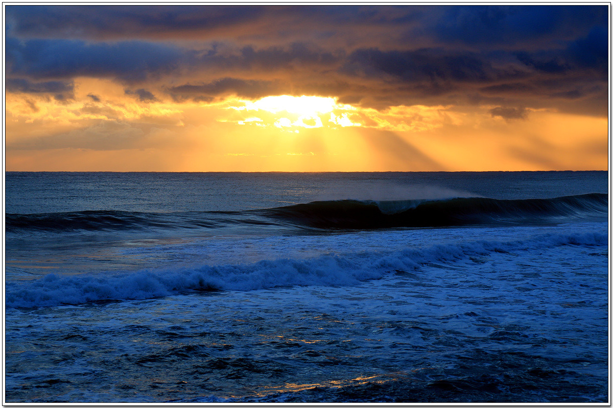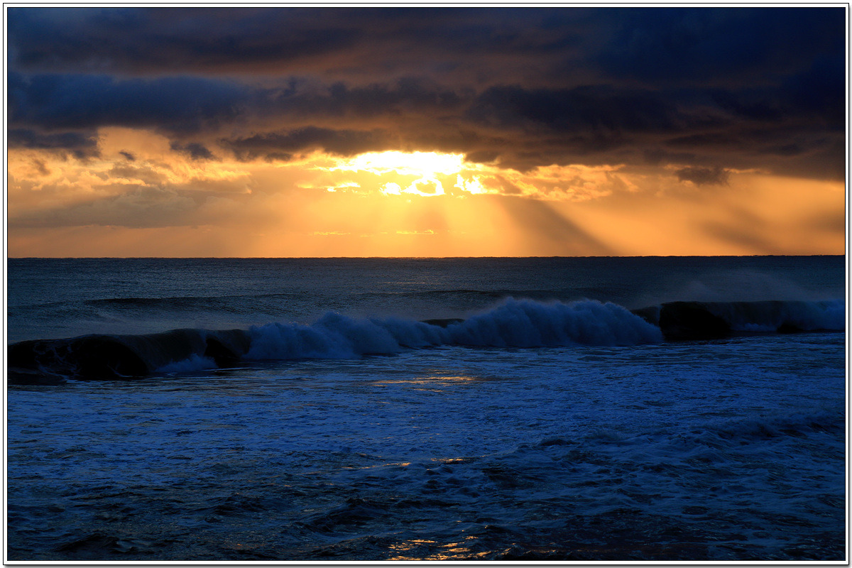 짙게 덮힌 구름 사이로 바다를 향해 내리 쏘이는 아침 햇살도 한 폭의 그림이 된다