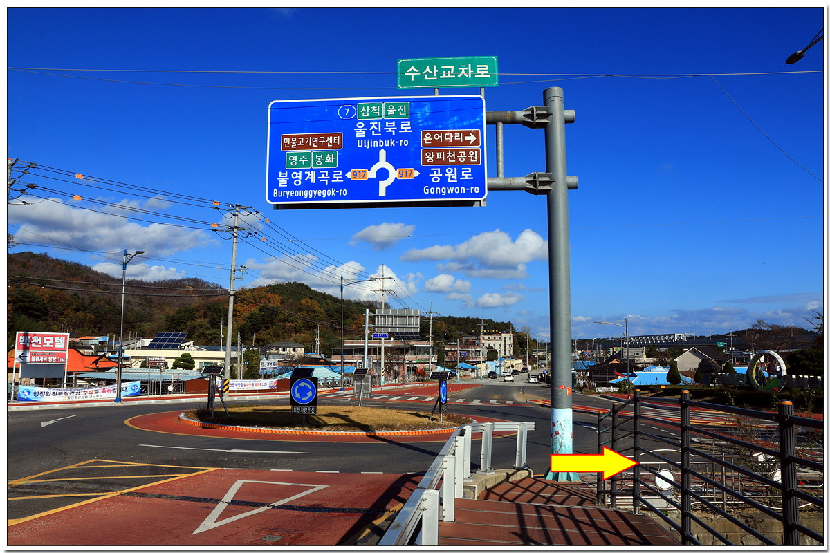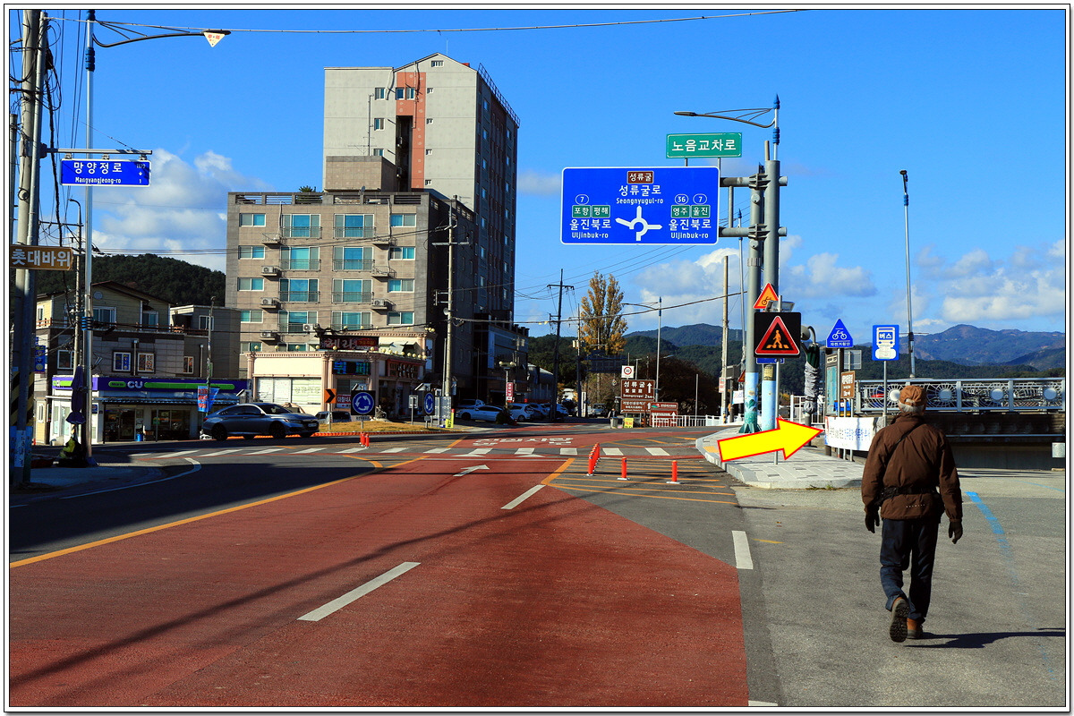 노음교차로 / 직진하면 성류굴과 불영계곡으로 갈 수 있다