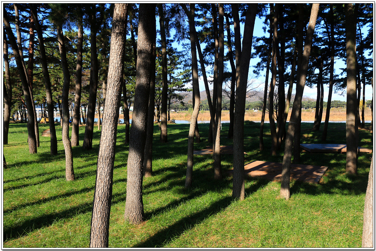 왕피천 주위에는 소나무 숲이 우거져 있고 텐트를 칠 수 있는 나무평상까지 설치되어 있다
