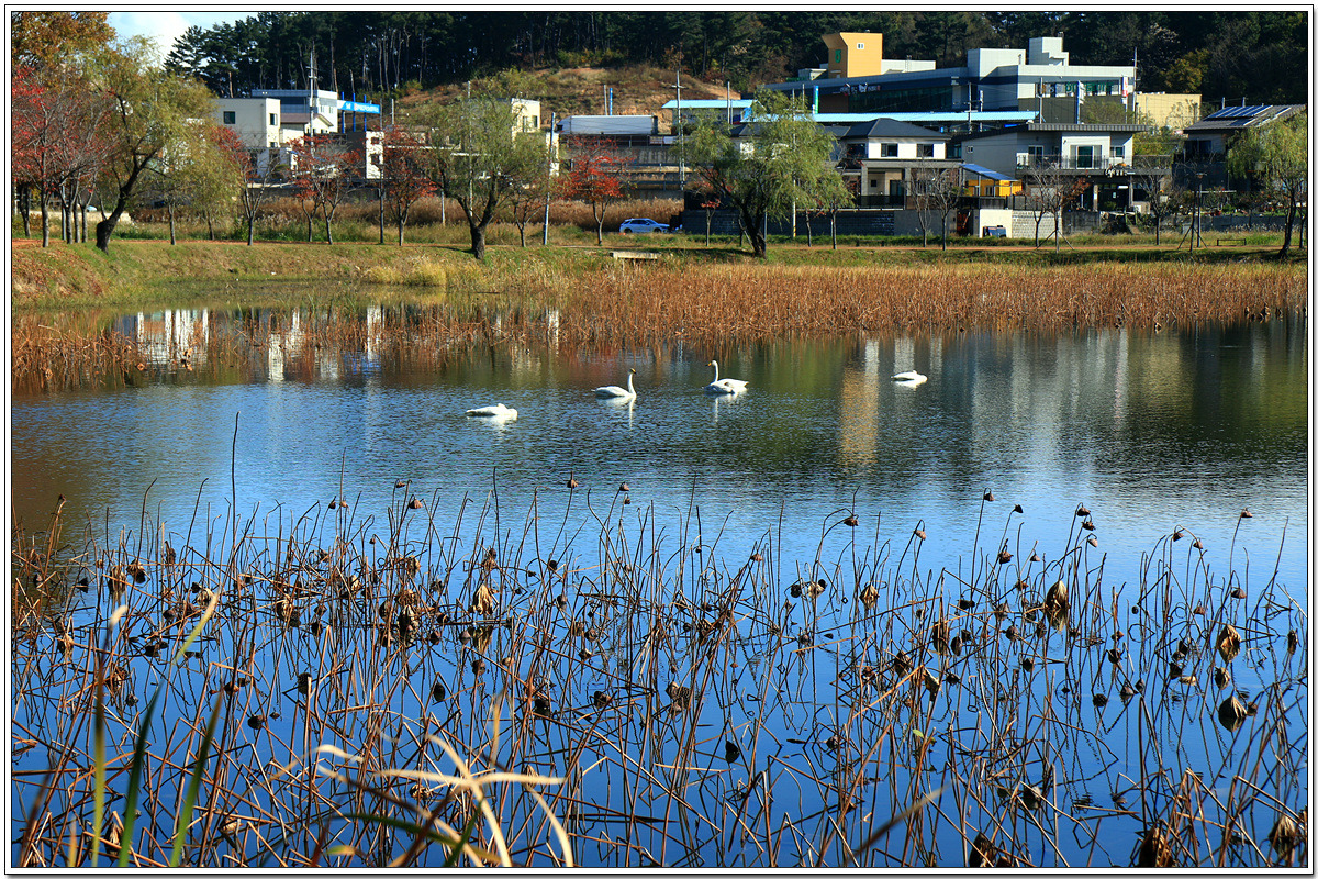 호수를 제 집처럼 한가로이 즐기는 백조(고니)