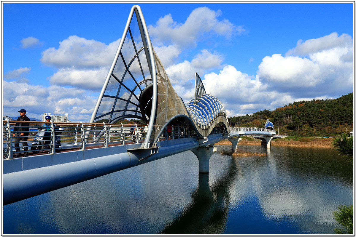 마침 울진군민 건강걷기대회 행사가 있어 수많은 인파가 다리 위를 오가고 있다
