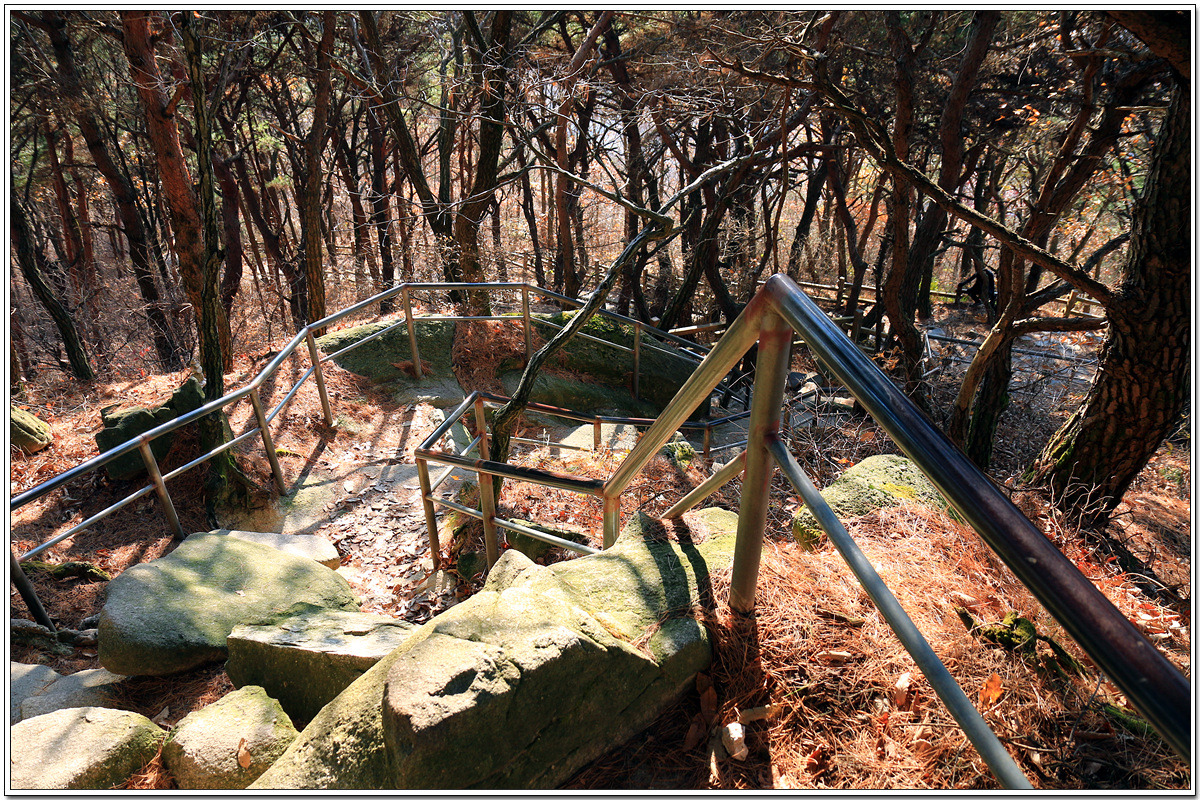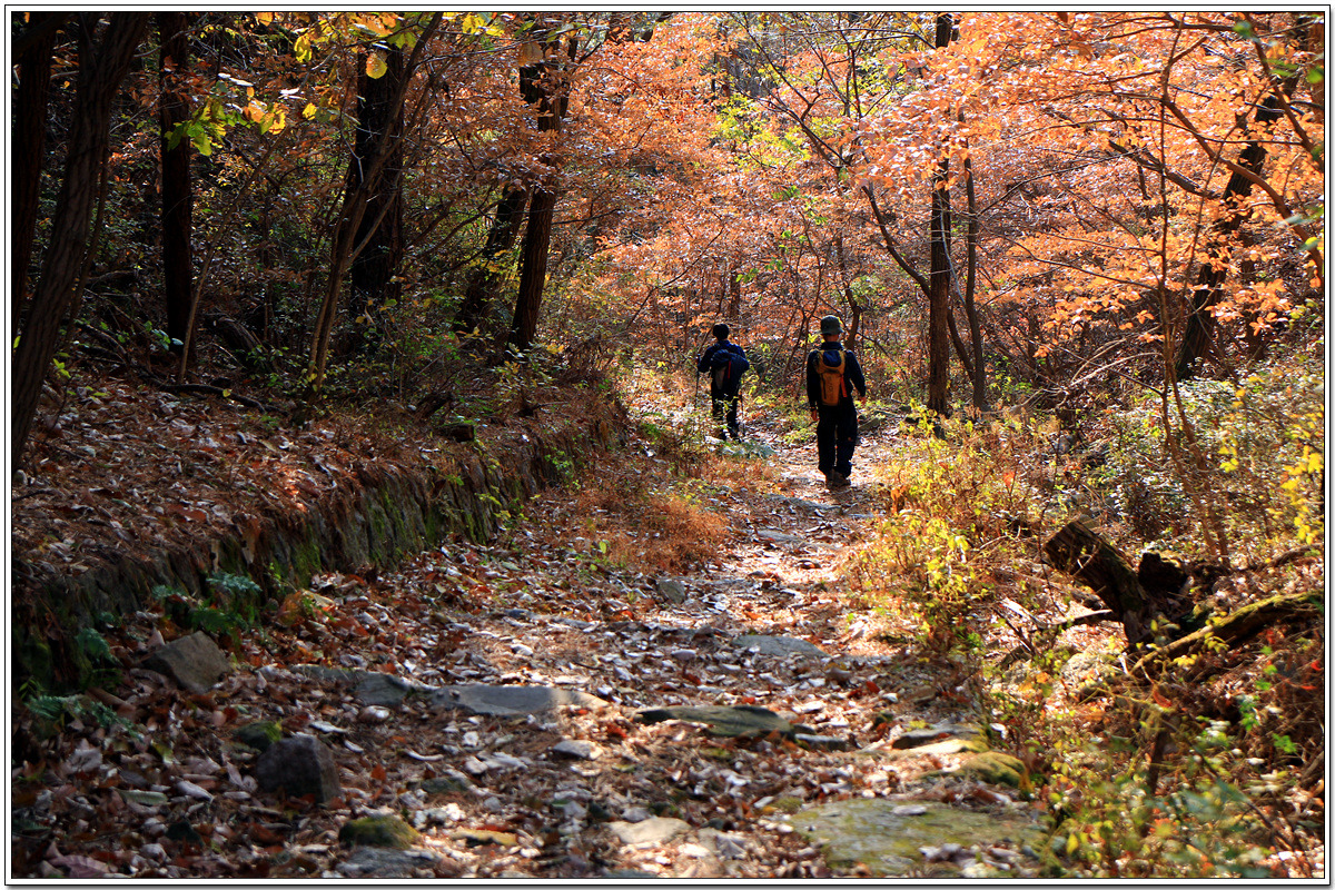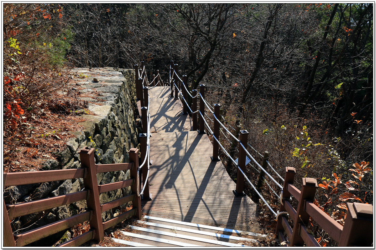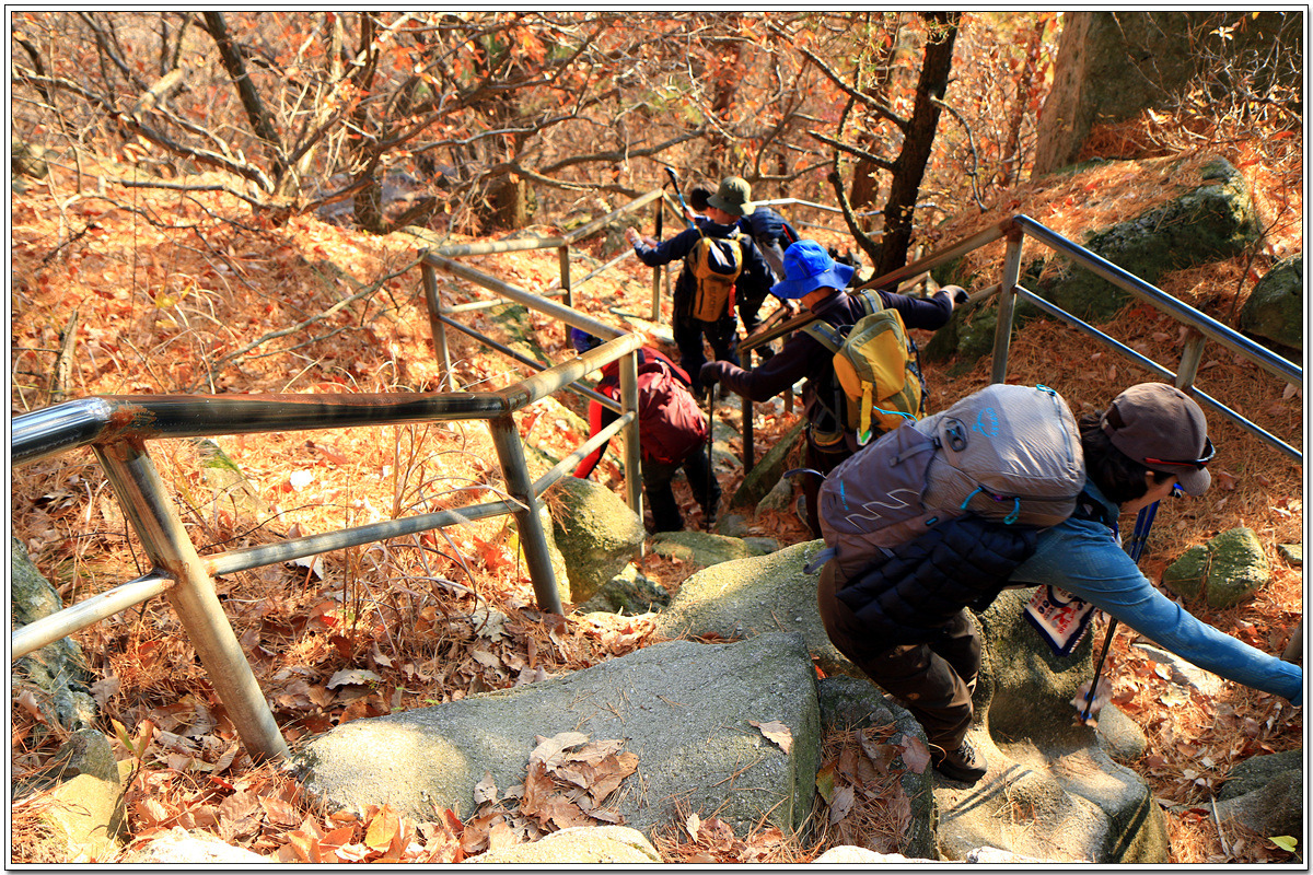 오늘 산행 중 제일 험난한 구간을 조심스럽게 내려가면