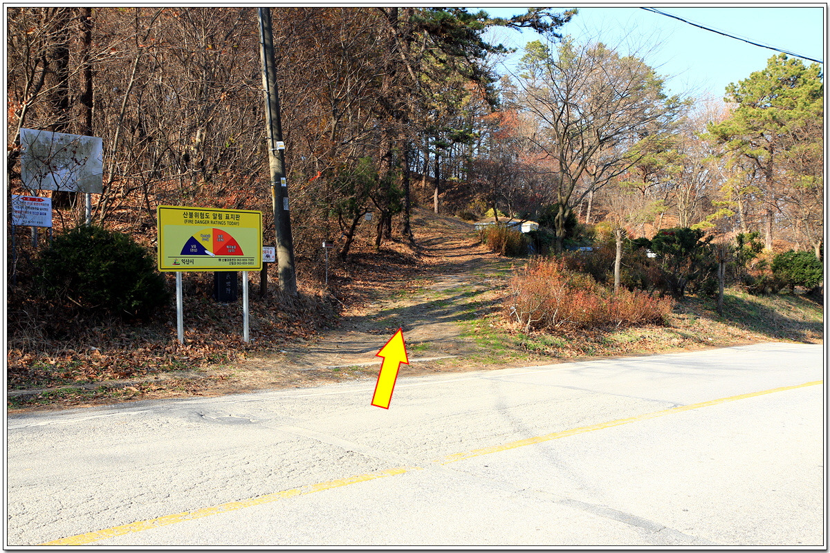 13:30 아리랑고개(다듬재)에서 도로를 가로질러 직진한다