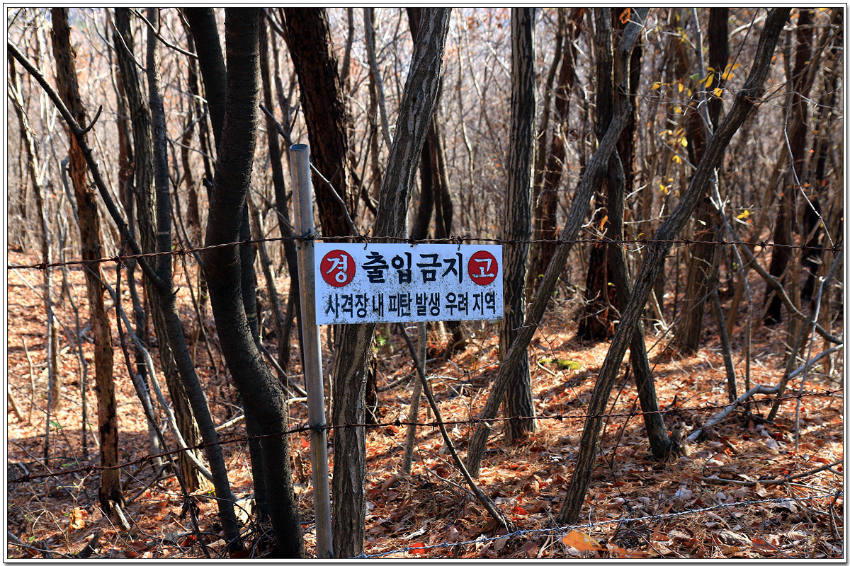 산행 하산지점에는 철조망이 둘러쳐있어 빙 돌아 정문으로 가야한다