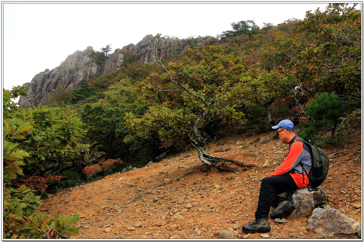 오른쪽으로 조망이 살짝 열리면서 삼봉능선의 남근봉과 호랑이봉이 모습을 보인다