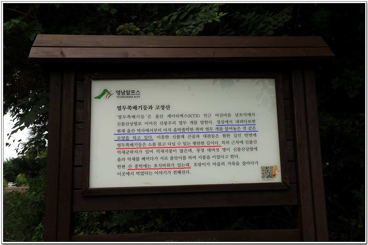 이내 나오는 영남알프스 둘레길 갈림길에서 오른쪽으로 오른다