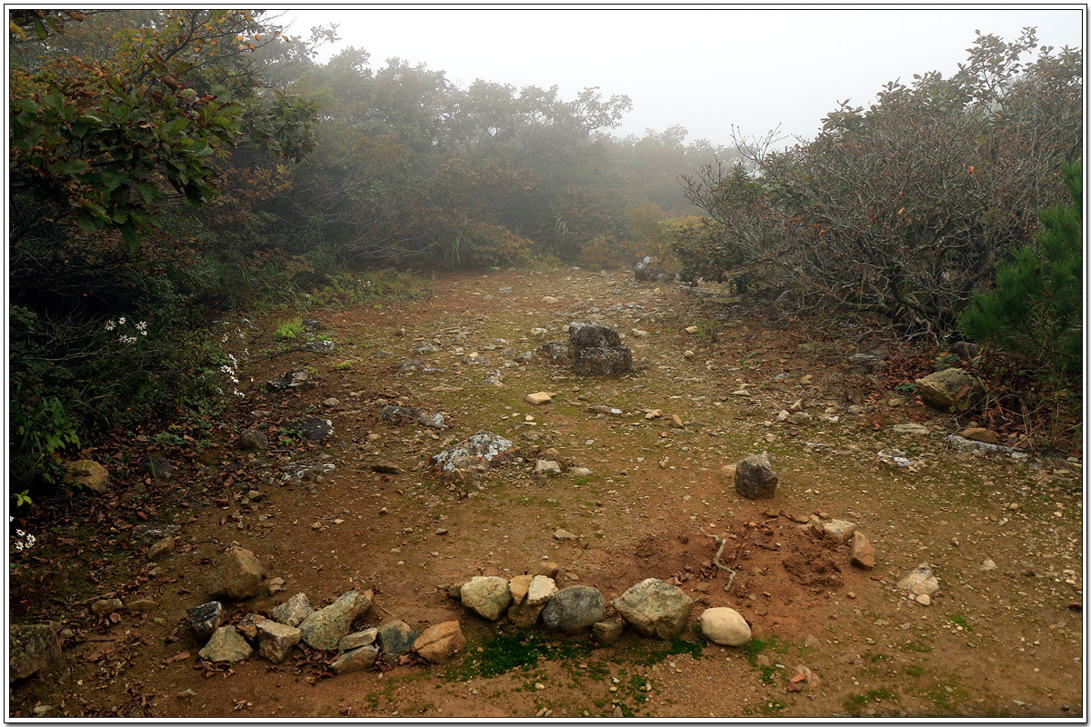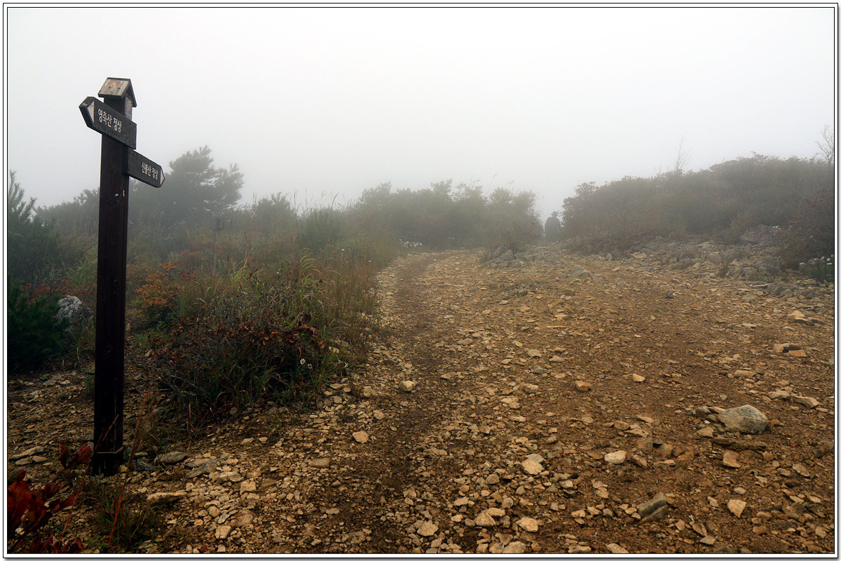 단조봉(丹鳥峰·1046m)이 그야말로 밋밋한 봉우리인지라 짙은 구름속에 가려져 있어 구별하지 못하였다