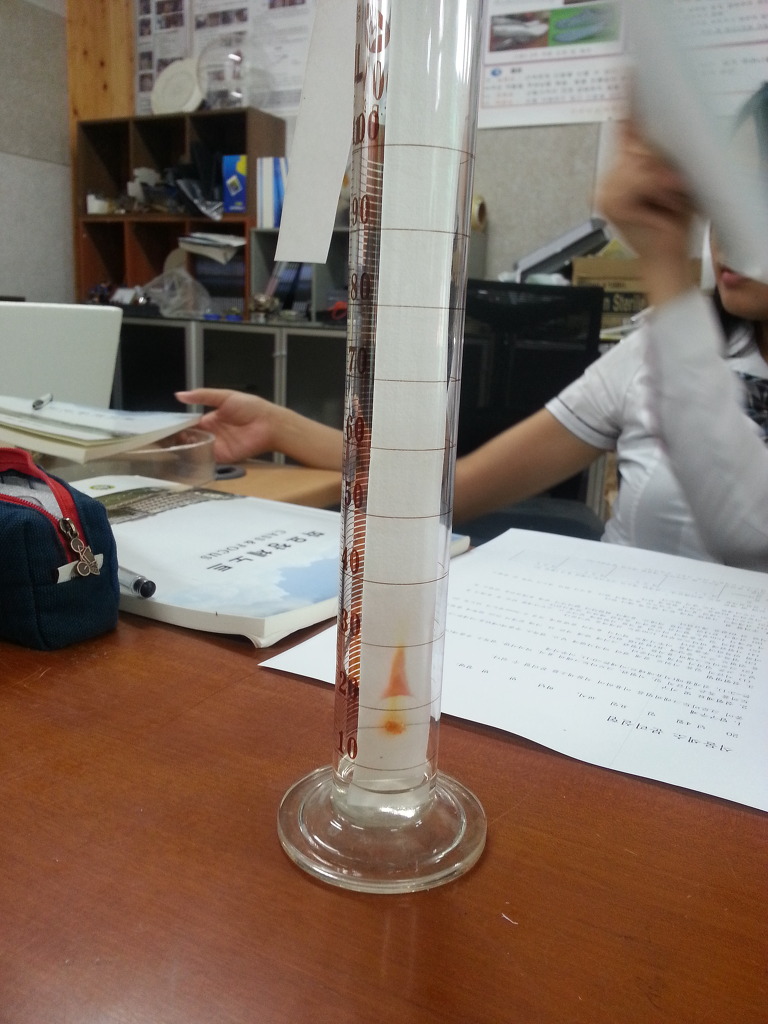 전개가 끝나면 용지를 꺼내고, 용매가 휘발되어 없어지기 전에 용매전선을 연필로 표시한 뒤 Rf값을 계산한다.