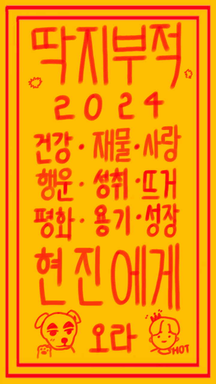 2022년, 2023년 모두 1월 1일에는 소윤이 써준 새해 부적과 함께 하였는데 왠지 딱지의 입장에서도 새소년한테 부적 써주면 좋을거 같아서 그려보았습니다 💭