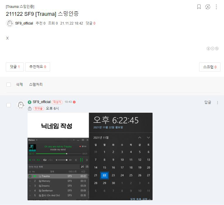 글제목 : 210000 SF9 [Trauma] 스밍인증