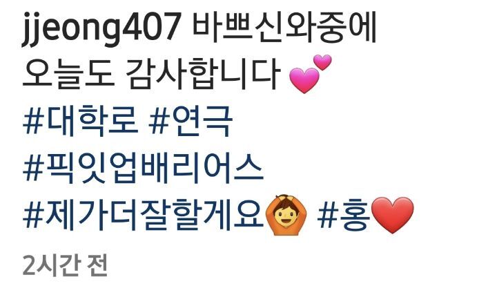 작성자가로수 그늘아래 서면 작성시간 22.02.27 눈뜨자마자배우님을 보니 좋네요요^^ 오늘 하루도 기분좋게 시작... 배우님이 요즘 바쁘시네요^^ 얼굴 자주 봐서 좋아요^^ 사진이 넘 잘 나왔어요... 얼굴도 크네 보이고^^ ㅋㅋㅋ 서배우님 화이팅!!!