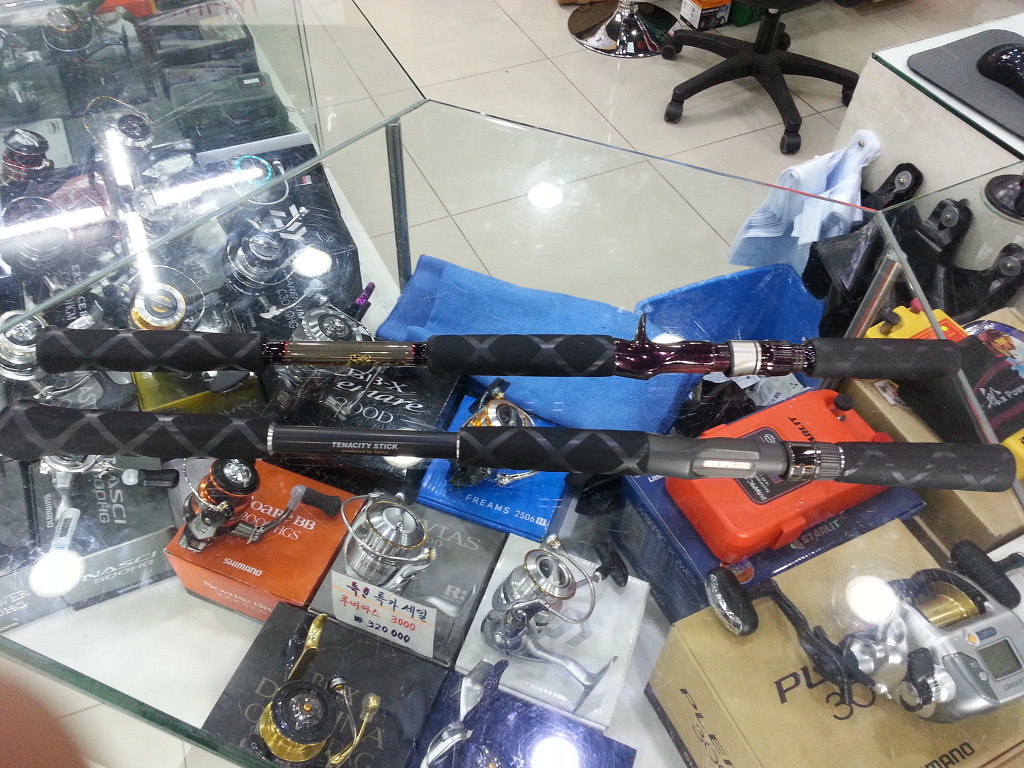 오늘 심심해서 하대에 배드민트 줄감기를 떼어내고 신신낚시북구점에서 수축고무로