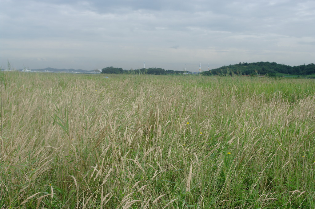 내몽고 초원에 자생하는 야건초와 같이 간척지 부지에 재배 되다시피 자라고 있는 화본과 야초