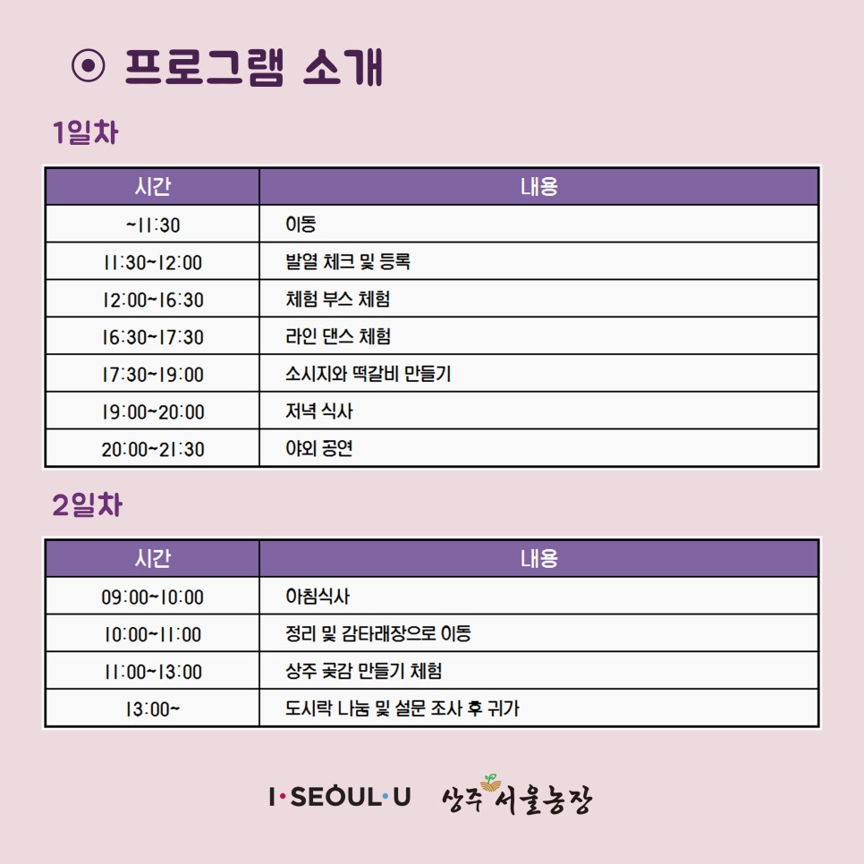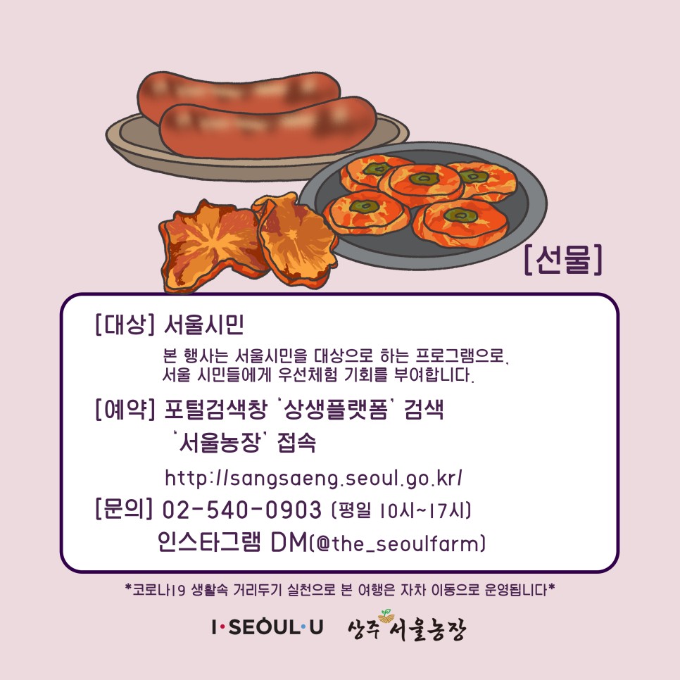 ☞ 프로그램 예약은 서울시 상생 플랫폼 내에 상주서울농장 페이지에서 진행해 주세요.