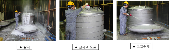 일반적으로 플랜트 제작 업체는 세정 관련하여 골머리를 앓고 있습니다. 특히 소형 물품이 아니라, 대형 Vessel인 경우가 많기 때문입니다. 업체에 따라서는 외주 처리를 하기도 합니다.