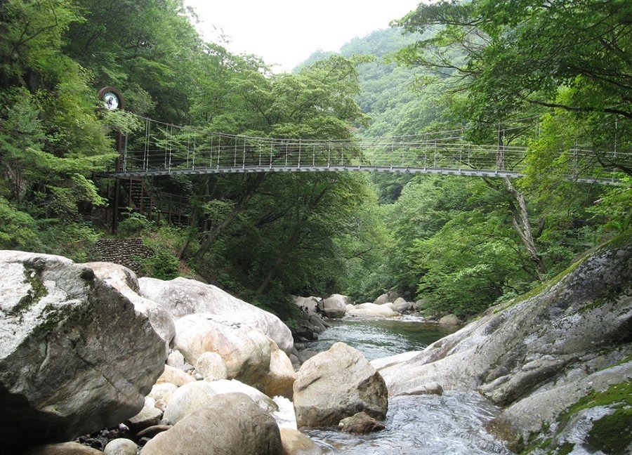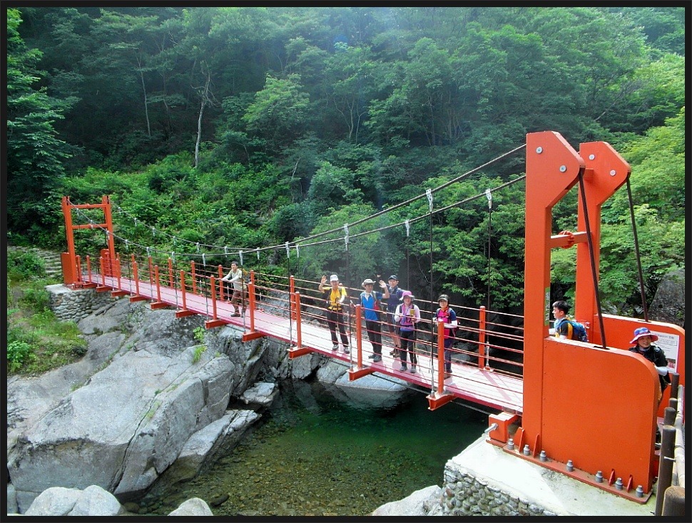 코스 : 코스 : 칠선계곡 추성주차장 ~ 탐방안내소 ~ 출렁다리 ~ 망바위 ~ 선녀탕 ~ ~ 옥녀탕 ~ 비선담 ~비선교 ~ 용소 ~추성주차장(원점회귀) (약 8,5Km, 4시간 : 휴식, 포토타임 포함, 초급) |