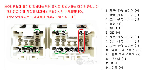 배선은 위의 그림과 사제오디오 설치설명서를 보고 연결했습니다.