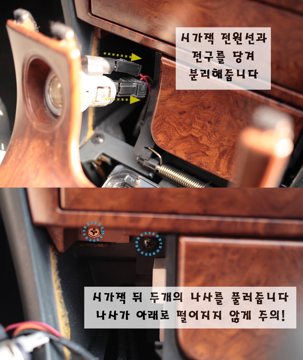 시가잭 전원잭과 전구를 분리하고 그 뒤에 있는 두개의 나사를 풀어줍니다.