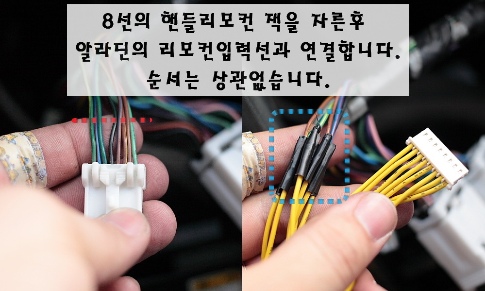 연결잭을 잘라낸 후 알라딘의 리모컨입력선과 하나하나 연결해줍니다.