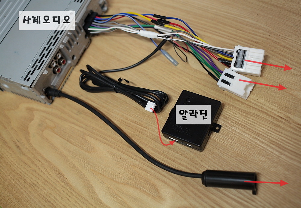 알라딘 본체에 위의 두 선을 연결한 모습입니다.