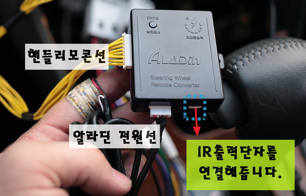 이제 IR출력단자의 선도 알라딘 본체에 연결해줍니다.