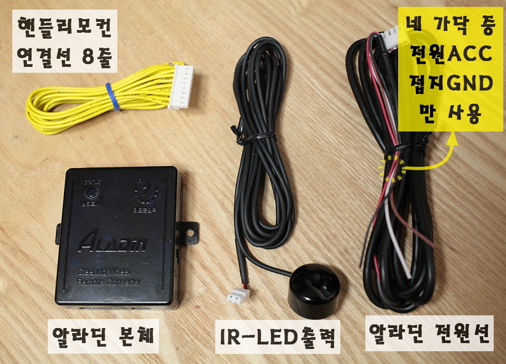 그 중 핸들리모콘 선과 알라딘 전원선은 알라딘 본체에,