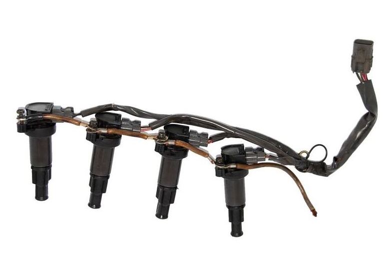 4개의 점화코일이 각각 고전압을 일으킵니다.(갈색 선은 접지선입니다. 신경쓰지 마세요.. 해외 사진을 가져오니 우리차와 좀 달라요)