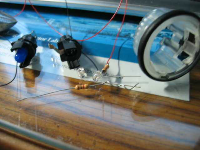 추가로 외기 차단 (초록을 고휘도 확산형 3파이 레드... 납작하게 갈았습니다.), 앞유리 습기제거 (주황을 파랑으로...)