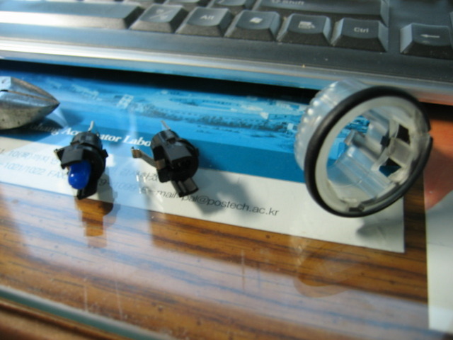다음은 계기판 조명조절 스위치 입니다. 먼저 분해하시면 사진에 보이는 위에 발이 + 아래가 - 입니다.