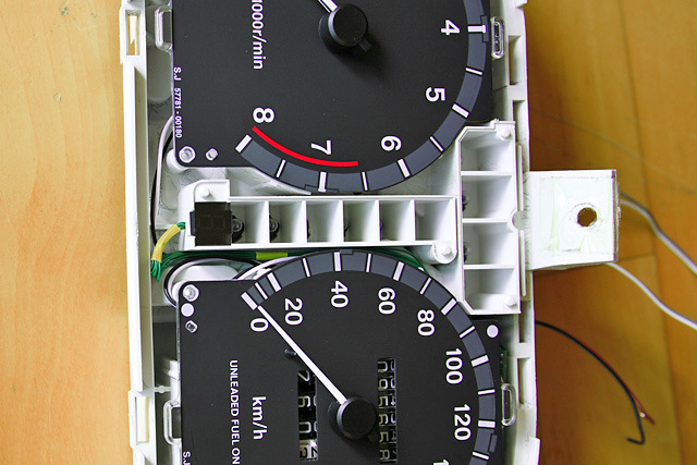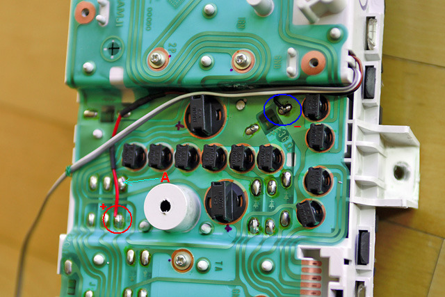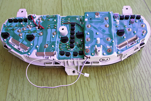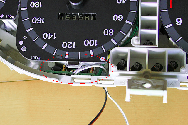 회로기판을 속도계 윗쪽 좁은 공간에 집어넣었습니다.