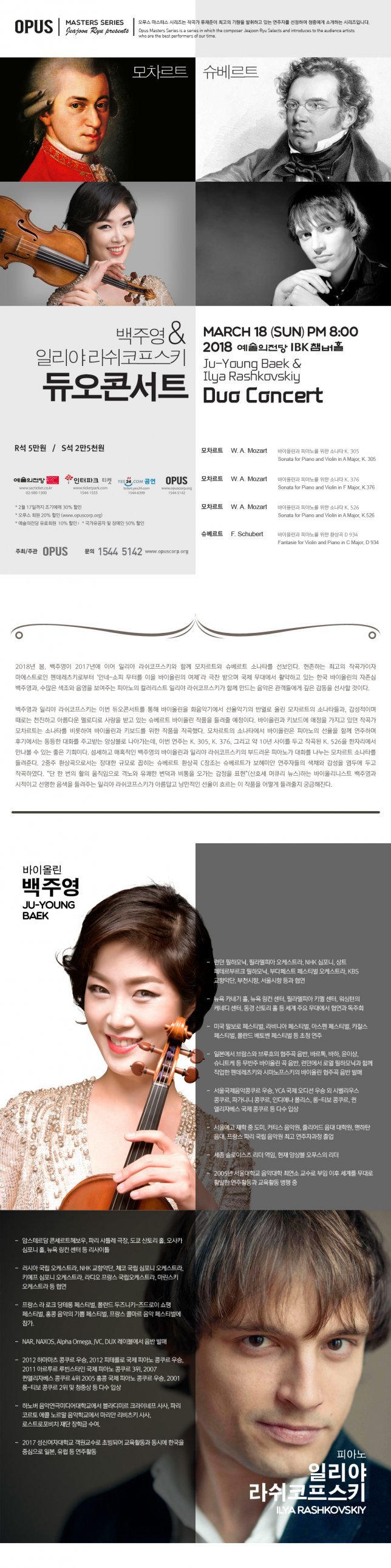 [3월18일 오후8시] 오푸스 마스터즈시리즈2 백주영&일리야라쉬코프스키 듀오콘서트
