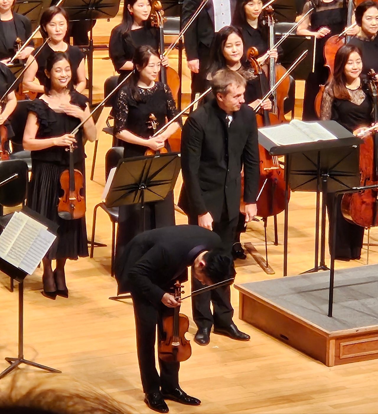 오늘 가장 아름다운 소리를 들려 준 건 바로 영웅의 생애 연주 중 바이올린 솔로였는데요 레이 첸에게서 못 들은 아름다운 바이올린 소리는 바이올린 솔로파트를 연주한 악장 웨인 린에게서 들었습니다.