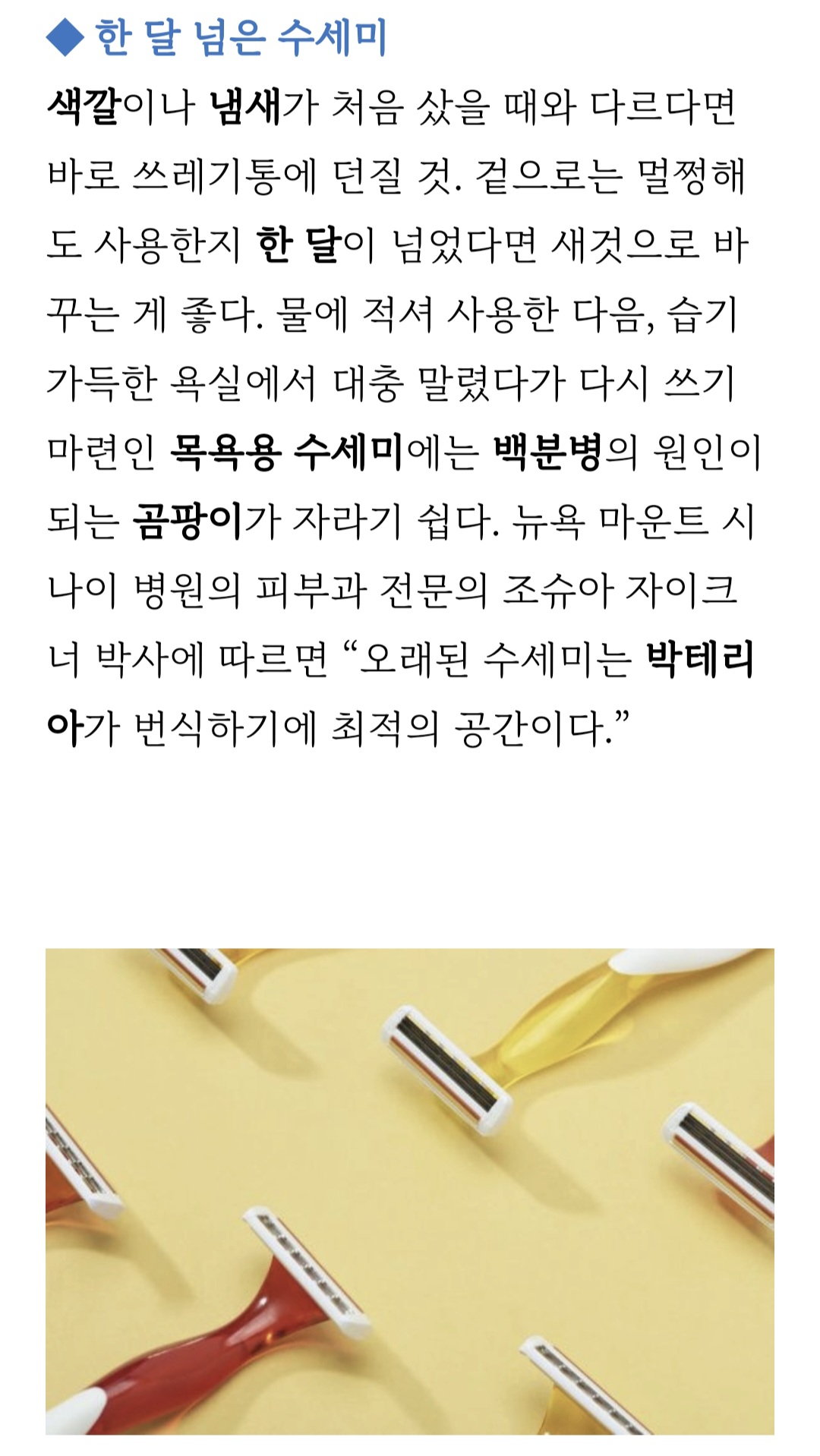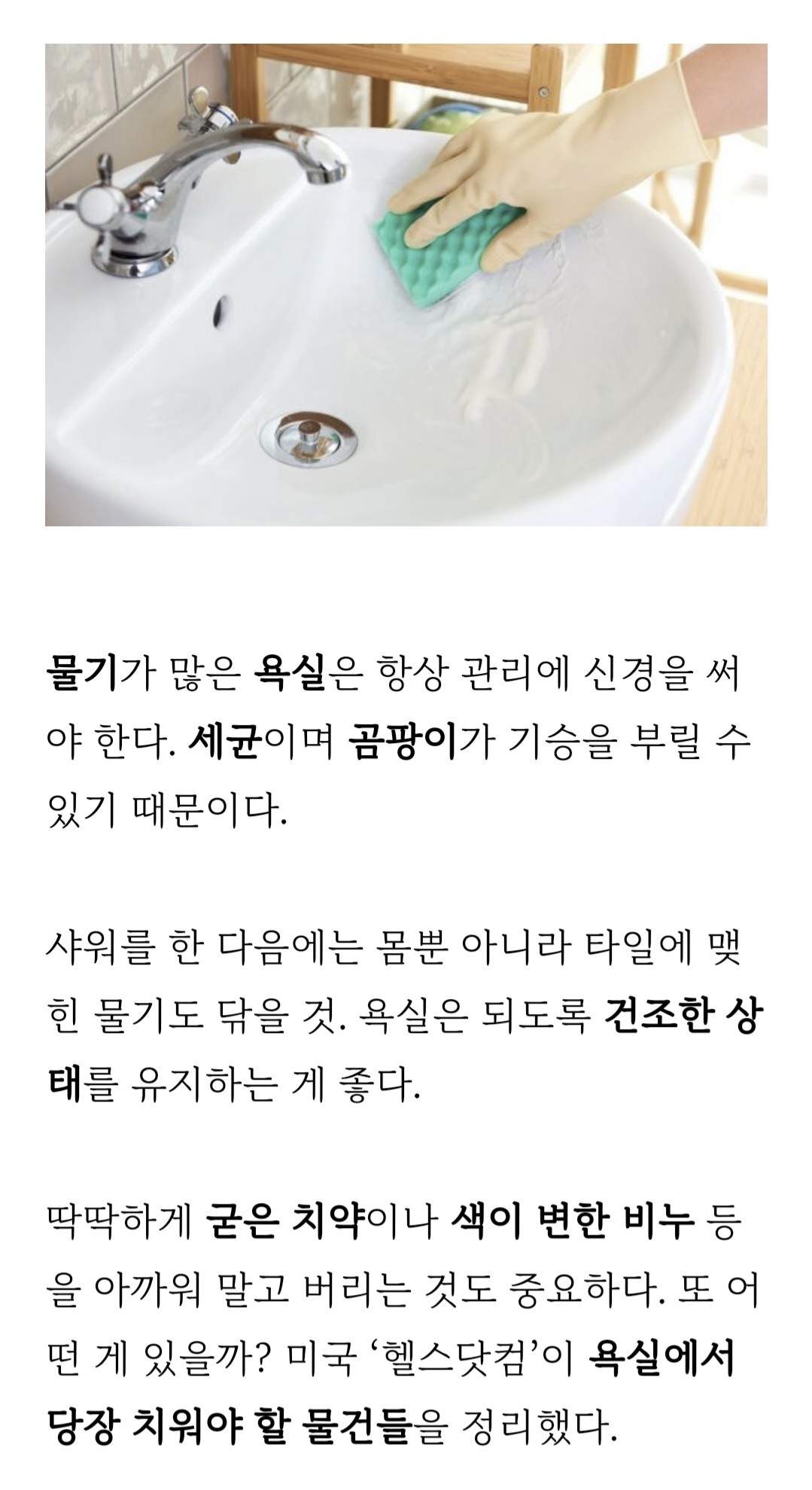 욕실에서 당장 치워야 하는 것들 작성자마중물(26기권희자)|작성시간22.02.09|조회수34 목록 댓글 2 글자크기 작게가 글자크기 크게가 다음검색 현재 게시글 추가 기능 열기 북마크 공유하기 신고 센터로 신고 댓글 댓글 2 댓글쓰기 답글쓰기 댓글 리스트 작성자♡축복 (48기, 이영숙) | 작성시간 22.02.09 아까워 하지말고 버릴건 버리기~^^ 작성자미미카엘(26기이은미) | 작성시간 22.02.09 버려야할게 많네요 ^^ 댓글 전체보기