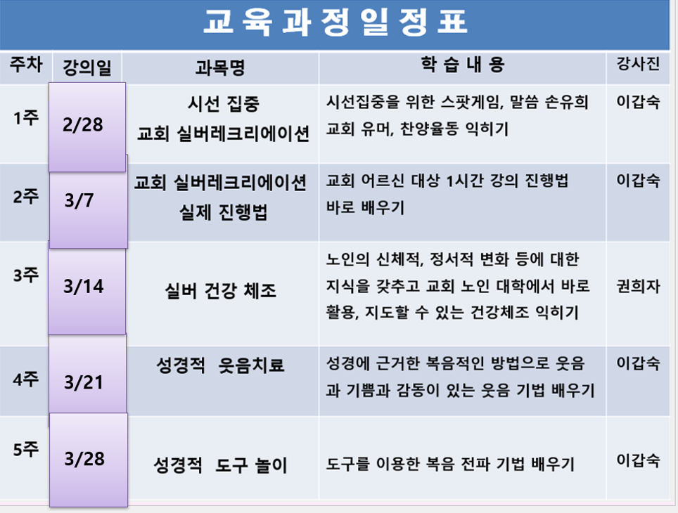 작성자마중물(26기권희자) 작성시간 26.02.10 교회 노인대학 개강과 함께 꼭 필요한 수업입니다^^