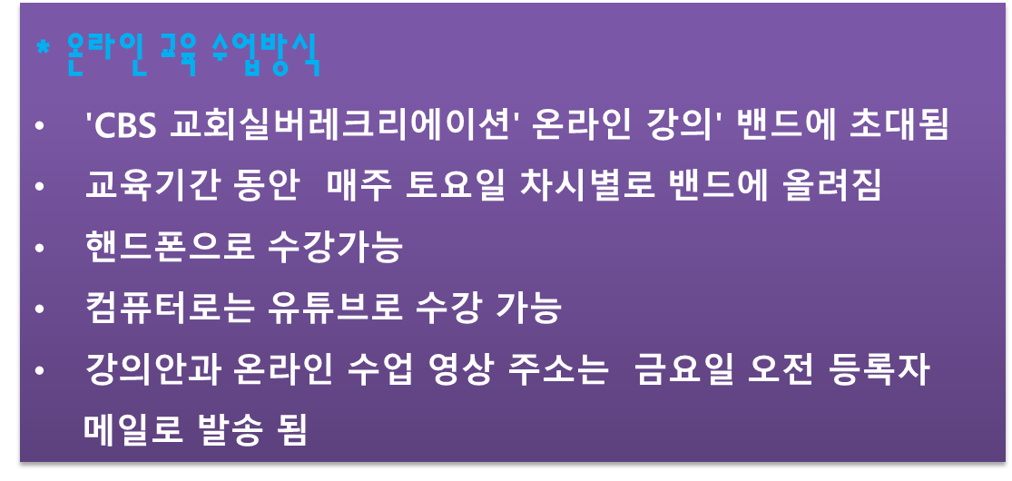 또한 본인 저장 할 수가 있으니 복습 가능한 유익한 수업입니다 은혜로운 말씀과 기도로 준비 하시며 찬양으로 감동이 배가 되는 귀한 강의 좋은 기회가 되실때 함께 하시기를 권해 드립니다^^ -