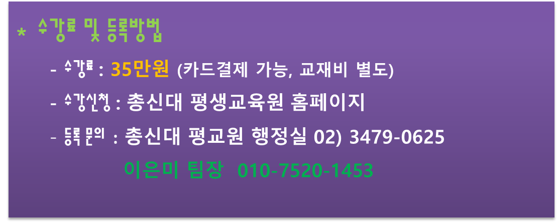 강습에 차별화 전문성을 두루두루 갖춘 강의