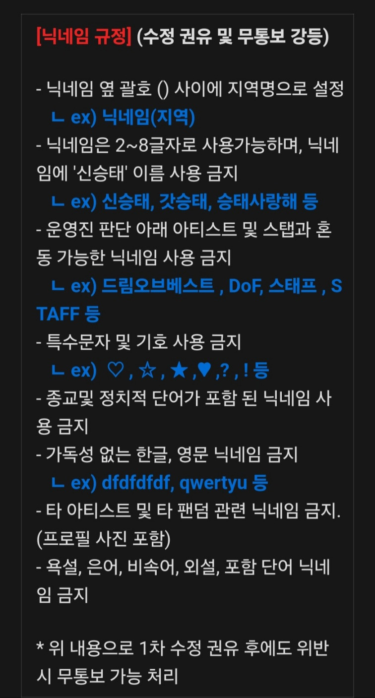 단, 등업 후 닉네임 사용 또는 개인정보등
