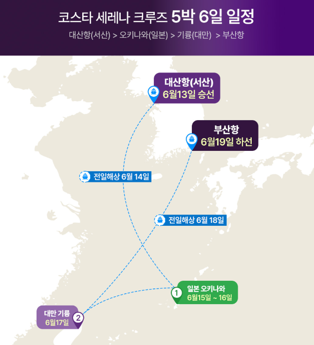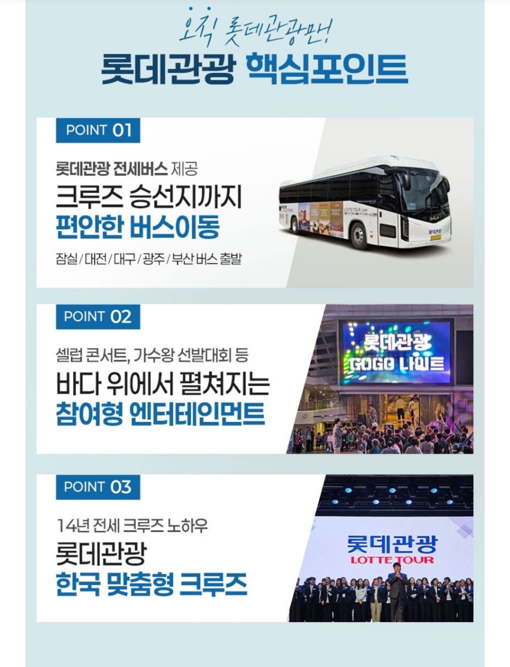 6월 크루즈여행 상품 찾았어요^^ 참고하세용🛳 작성자폴인러브(강원강릉)|작성시간26.01.06|조회수623 목록 댓글 4 글자크기 작게가 글자크기 크게가 https://pkgtour.naver.com/products/lottetour/D99H-0764962-52944-20260613[6/13 서산출발, 리뉴얼 OPEN] 한대일 국민크루즈 7일(서산/오키나와/기륭/부산) - 네이버 티켓·패키2026-06-13 ~ 2026-06-19 일정 6박 7일pkgtour.naver.com확정된다면 이상품으로 가게 되는거 같네요 ㅋ 다음검색 현재 게시글 추가 기능 열기 북마크 공유하기 신고 센터로 신고 댓글 댓글 4 댓글쓰기 답글쓰기 댓글 리스트 작성자따라할까나(강원원주) | 작성시간 26.01.06 답댓글 작성자폴인러브(강원강릉) 작성자 본인 여부 작성자 | 작성시간 26.01.06 작성자글루(서포터즈) | 작성시간 26.01.06 그런거같네요ㅎ 정보력👍👍👍 감사합니다ㅎ 답댓글 작성자폴인러브(강원강릉) 작성자 본인 여부 작성자 | 작성시간 26.01.06 댓글 전체보기