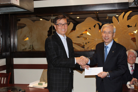 미주 동문들의 기금을 총장님께 전달하고 있는