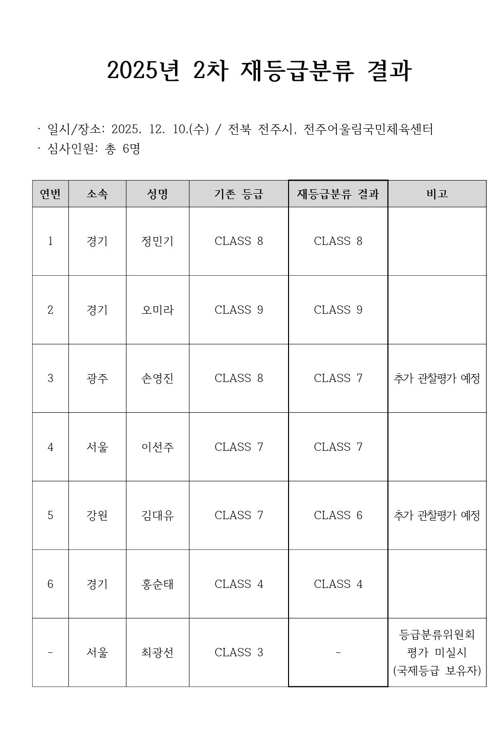 2025년 2차 재등급분류 결과를 다음과 같이 안내합니다.