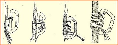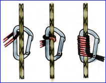 반 까베스땅 매듭카라비너에서 쉽게 자일이 미끄러지지 않도록 하는 추락제동용 매듭으로 적은 힘으로도 제동이 잘 된다.
