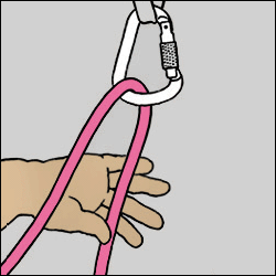 로프를 늦추어 주기를 원하는 파트너에게 로프를 풀어 줄 때 사용.