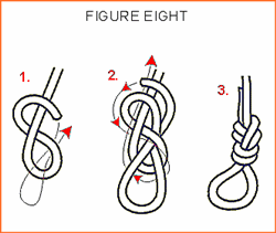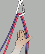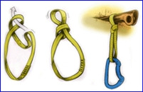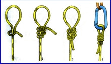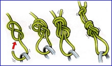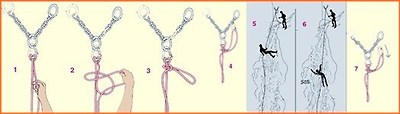 선등자나 후등자가 사용하는 가장 대표적인 매듭으로 어두운 곳 에서도 능숙하게 할줄 알아야 한다. 줄을 안전벨트에 연