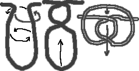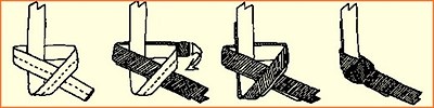 마치 창문을 열듯 서로 겹쳐지게 하면 까베스똥 매듭이 책갈피를 닫듯 서로 겹쳐지게 하면 반까베스똥 매듭이 된다.