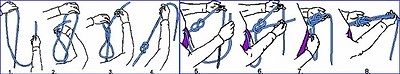 이 매듭은 로프와 로프를 연결할 때 사용한다. 사용시 매듭이 풀리지 않으며 힘을 받아 조여진 후에도 쉽게 풀 수 있다.